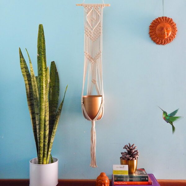 Enhance your living space with this Chic Off-White Macrame Plant Hanger, a perfect blend of functionality and aesthetics for plant enthusiasts and interior decor enthusiasts alike.