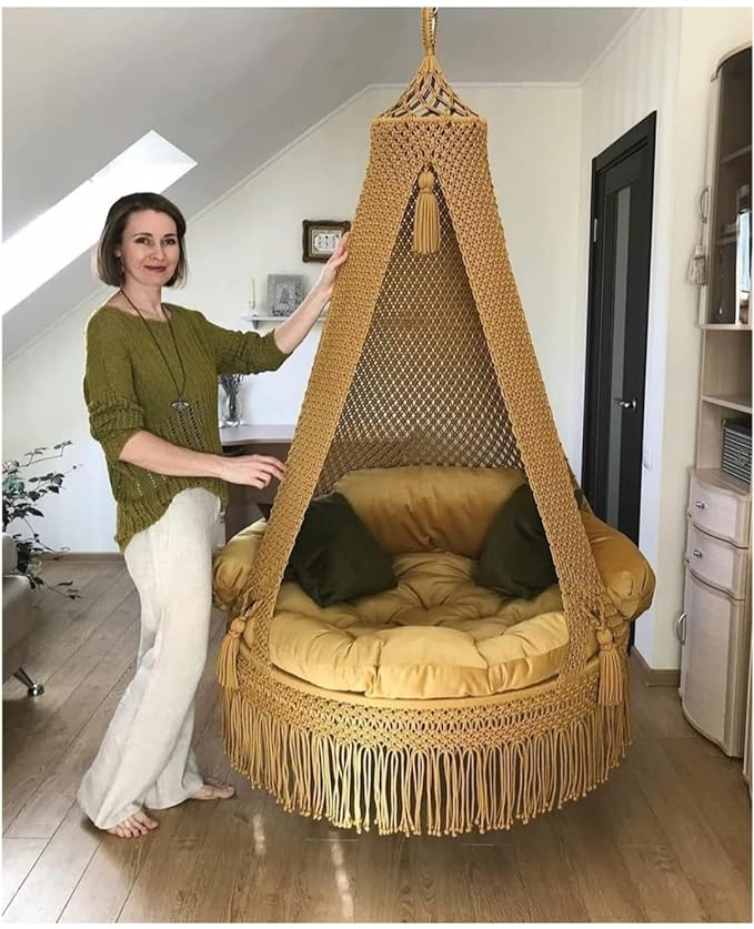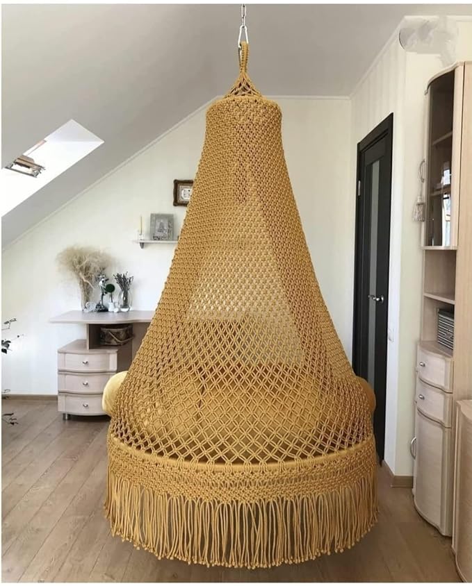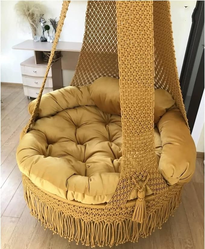 - Cocoon of Relaxation: Crafted for ultimate comfort, the Macrame Swing Chair offers a cocoon-like seat, inviting you to unwind and escape into a world of tranquility.