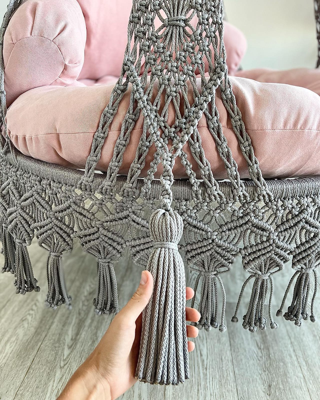 Step into serenity with Tranquil Tides, where the Grey Macrame Swing Chair invites you to relax and rejuvenate in a chic and tranquil oasis. Create a stylish retreat that resonates with both modern design and timeless comfort.