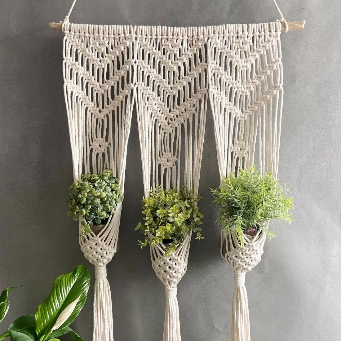 Triple Delight Macrame Plant Hanger – Perfect for 4 to 8 Inches Diameter Pots